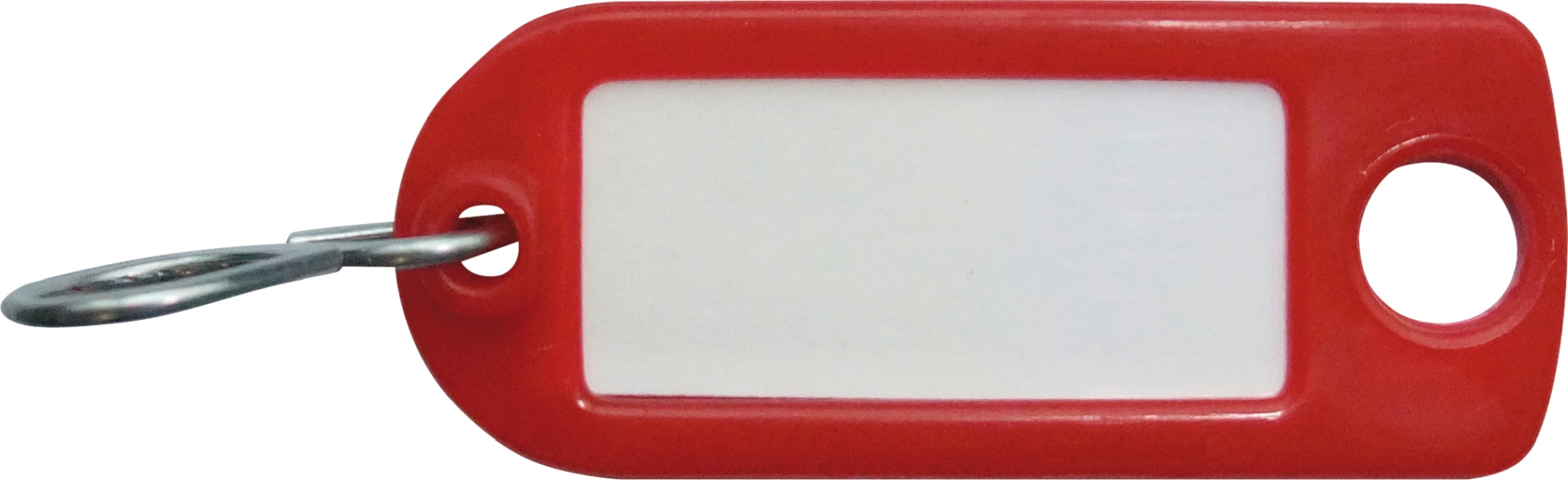 Die simplen Plastik-Schlüsselanhänger sind beschriftbar und ausgestattet mit einem Aufhängeloch.