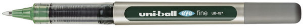UNI-BALL Roller eye fine Schaft aus PP metallic, mit Sichtfenster, rostfreie Stahlspitze, Kappe mit Clip verchromt, dokumentenecht, wasserfeste Pigmenttinte, Kappenende in der Schreibfarbe, nicht nachfüllbar, Strichbreite 0,5 mm. grün