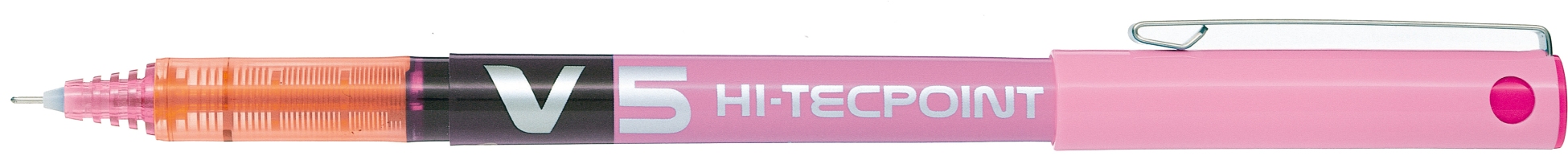 PILOT Roller Hi-Tecpoint V5 Karbidkugelspitze, Kappe mit Clip, Schaft in der Schreibfarbe, Jumbo-Tintentank mit Sichtfenster, nicht nachfüllbar, Strichbreite 0,3 mm. rosa