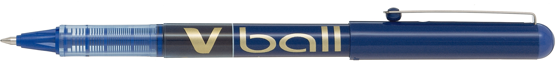 PILOT Roller V-Ball Stahlspitze, Kappe mit Clip, Schaft in der Schreibfarbe, Tintentank mit Sichtfenster, nicht nachfüllbar, Strichbreite 0,3 mm. blau dokumentenecht