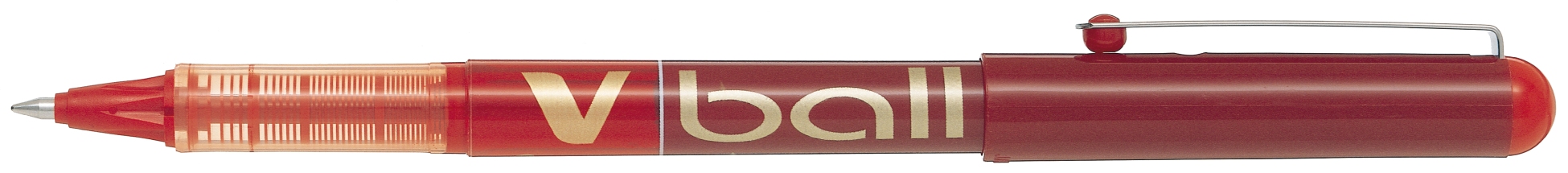 PILOT Roller V-Ball Stahlspitze, Kappe mit Clip, Schaft in der Schreibfarbe, Tintentank mit Sichtfenster, nicht nachfüllbar, Strichbreite 0,3 mm. rot