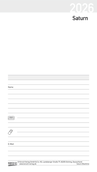 Kalendereinlage für Saturn Leporello zum Austauschen.