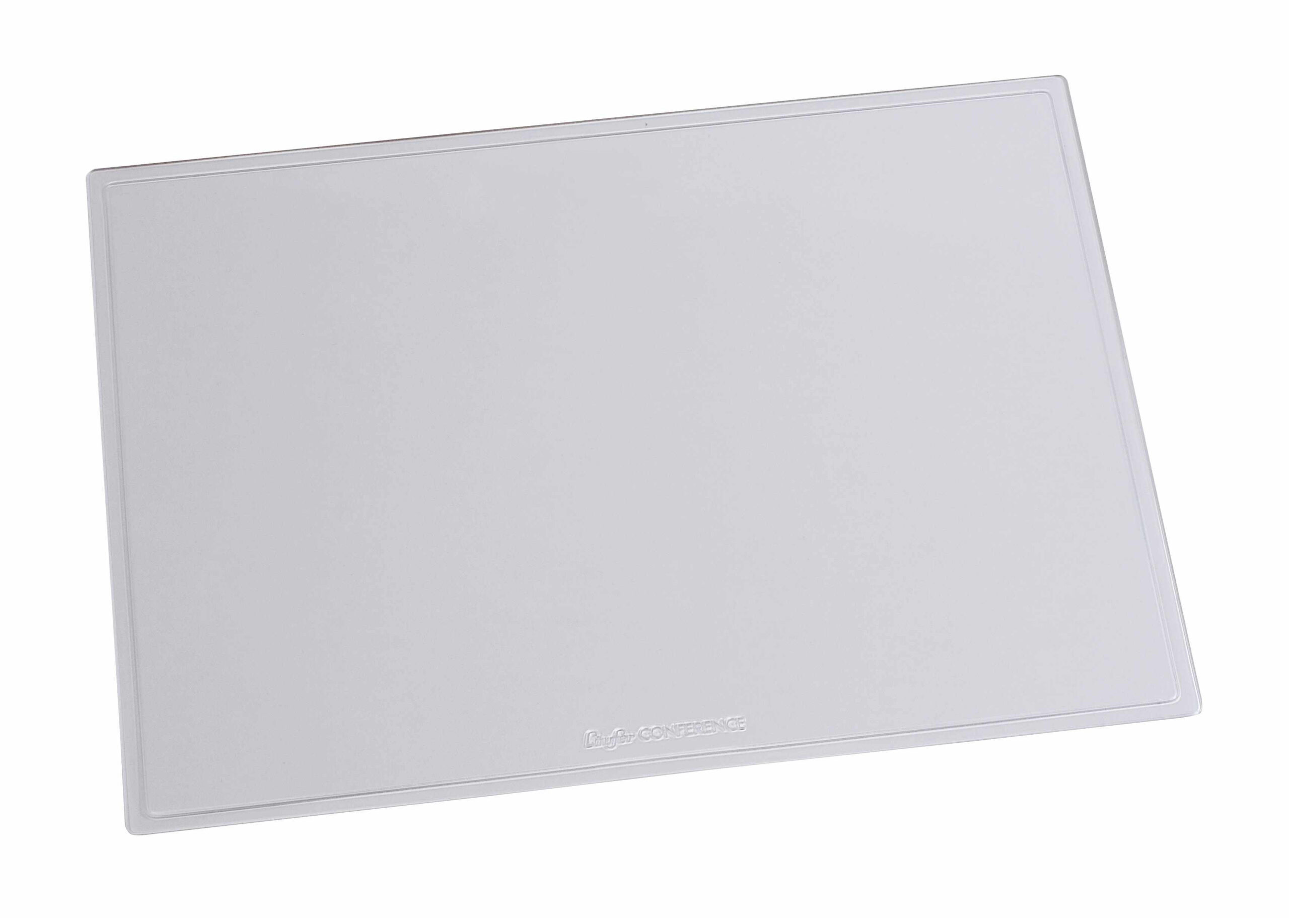 LÄUFER® Schreibunterlage Conference aus PVC, hoher Komfort, Kleinformat ideal für den Konferenztisch, schützt die Oberfläche der Möbel. Masse: B 420 x H 300 mm. Nachhaltigkeit eco:plus: recyclingfähig, recycelter Bestandteil, Recycelgehalt Abfall vor Gebrauch max. 75%, Recycelgehalt Abfall nach Gebrauch max. 99%. transparent