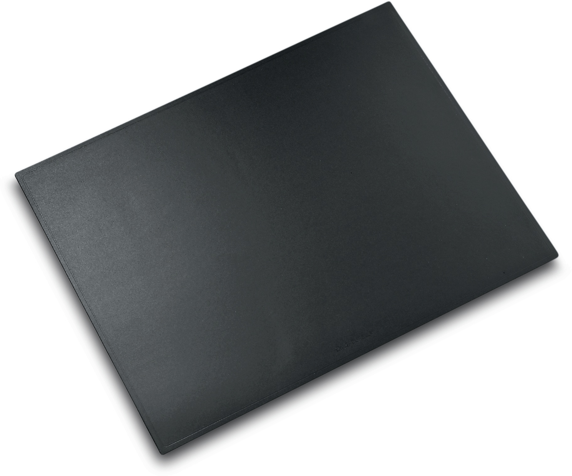 LÄUFER® Schreibunterlage Durella aus PVC, rutschfest, bruchsicher, liegt fest und flach, geruchlos und farbecht, mit feinem Zierrand. Nachhaltigkeit eco:plus: recyclingfähig, recycelter Bestandteil, Recycelgehalt Abfall vor Gebrauch max. 75%, Recycelgehalt Abfall nach Gebrauch max. 99%. 530 x 400 mm schwarz