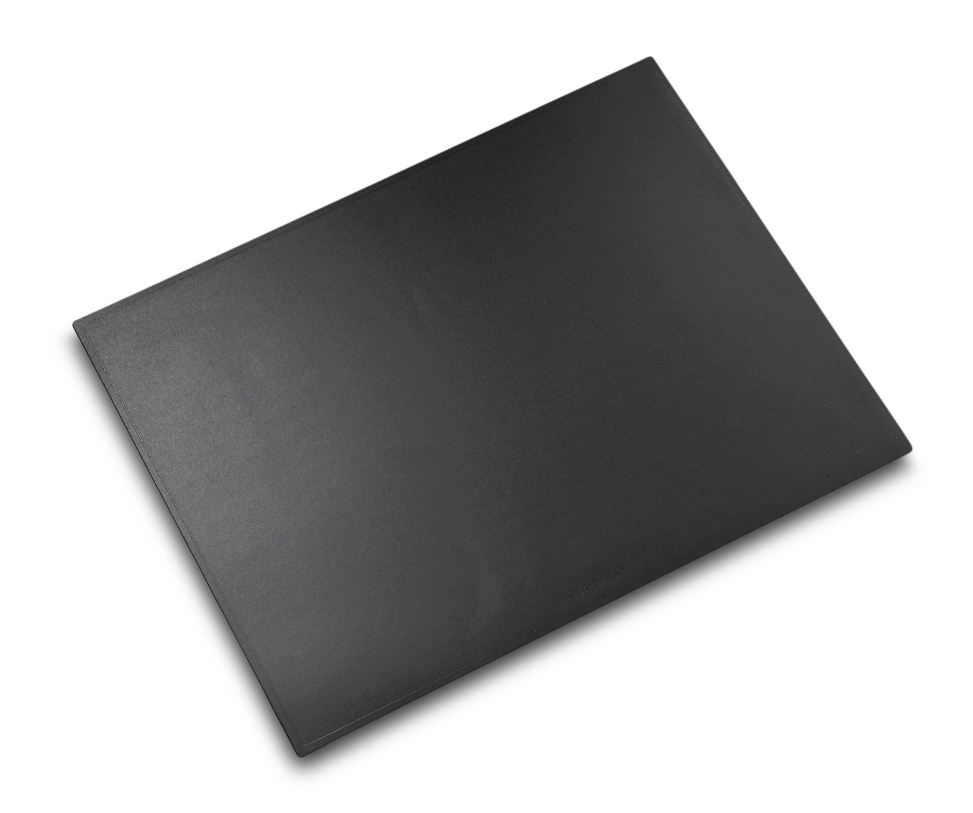 LÄUFER® Schreibunterlage Durella aus PVC, rutschfest, bruchsicher, liegt fest und flach, geruchlos und farbecht, mit feinem Zierrand. Nachhaltigkeit eco:plus: recyclingfähig, recycelter Bestandteil, Recycelgehalt Abfall vor Gebrauch max. 75%, Recycelgehalt Abfall nach Gebrauch max. 99%. 650 x 520 mm schwarz