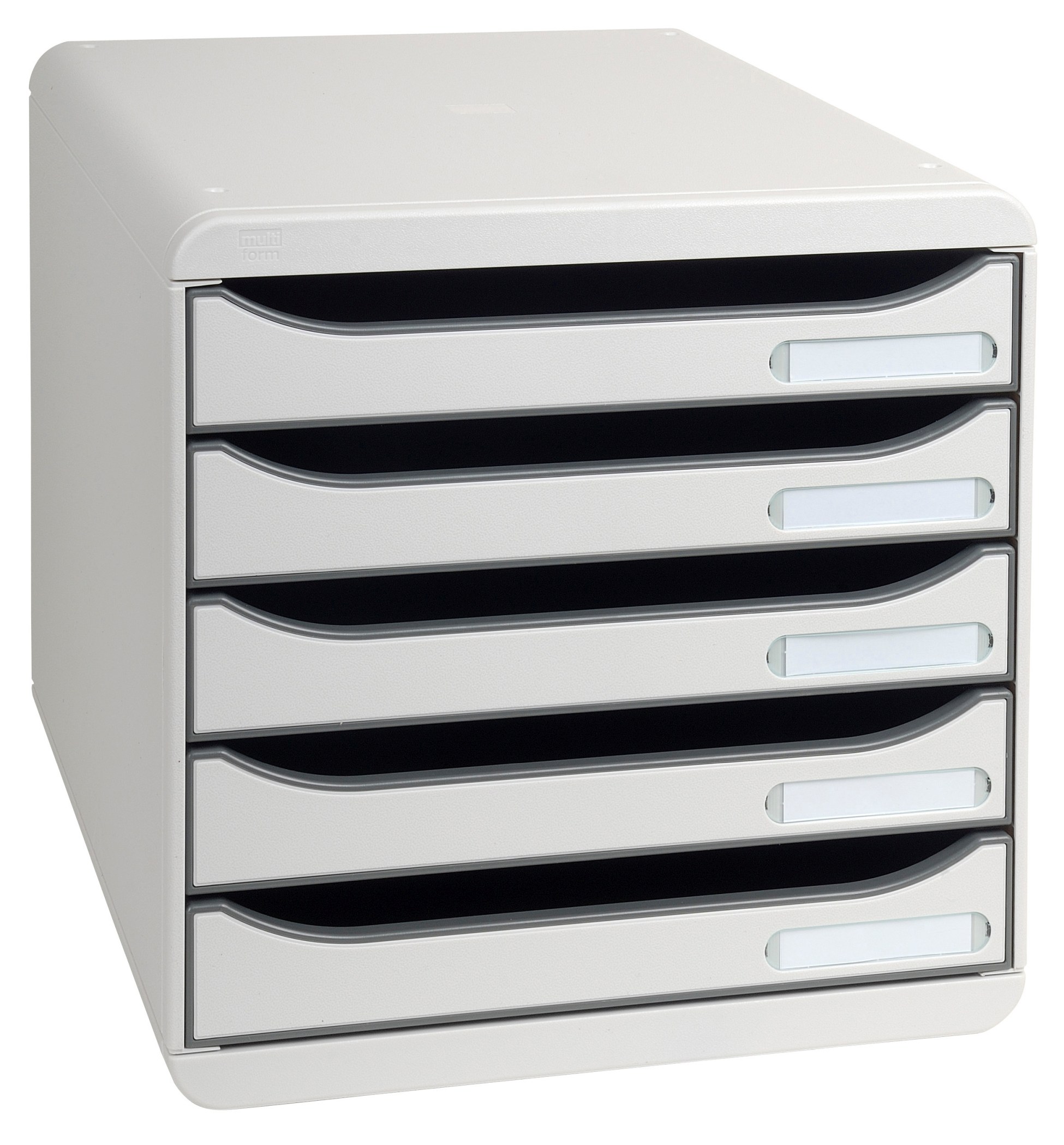 Die Schubladenbox Big Box Plus von Exacompta verfügt über 5 Schubladen, in denen Sie Dokumente im Format A4 und A4+, Sammelmappen mit Gummizug 24x32cm oder großformatige Umschläge ablegen können. Sie eignet sich für den Einsatz im Büro, Home Office oder in der Schule.