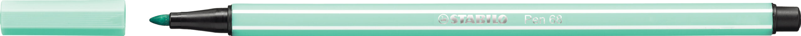 STABILO® Fasermaler Pen 68 Rundspitze, ventilierte Kappe, Tinte auf Wasserbasis, Schaft in der Schreibfarbe, nicht nachfüllbar, Strichbreite ca. 1 mm. Nachhaltigkeit eco:plus: umweltfreundliche Verpackung. eisgrün