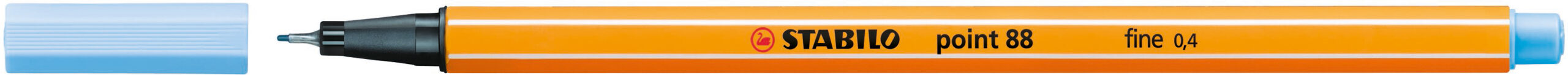 STABILO® Fineliner point 88® metallgefasste, feine Kunststoffspitze, ventilierte Kappe, 6eckiger Schaft, Kappe in der Schreibfarbe, nicht nachfüllbar, Strichbreite ca. 0,4 mm. Nachhaltigkeit eco:plus: umweltfreundliche Verpackung. eisblau