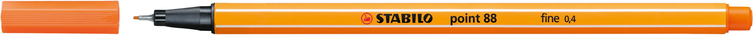 STABILO® Fineliner point 88® metallgefasste, feine Kunststoffspitze, ventilierte Kappe, 6eckiger Schaft, Kappe in der Schreibfarbe, nicht nachfüllbar, Strichbreite ca. 0,4 mm. Nachhaltigkeit eco:plus: umweltfreundliche Verpackung. gelbrot