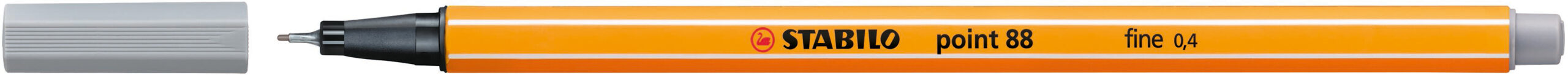 STABILO® Fineliner point 88® metallgefasste, feine Kunststoffspitze, ventilierte Kappe, 6eckiger Schaft, Kappe in der Schreibfarbe, nicht nachfüllbar, Strichbreite ca. 0,4 mm. Nachhaltigkeit eco:plus: umweltfreundliche Verpackung. mittelgrau