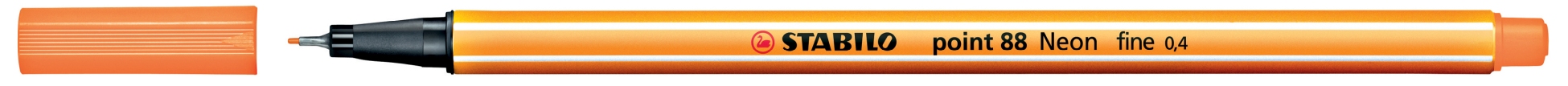 STABILO® Fineliner point 88® metallgefasste, feine Kunststoffspitze, ventilierte Kappe, 6eckiger Schaft, Kappe in der Schreibfarbe, nicht nachfüllbar, Strichbreite ca. 0,4 mm. Nachhaltigkeit eco:plus: umweltfreundliche Verpackung. neonorange