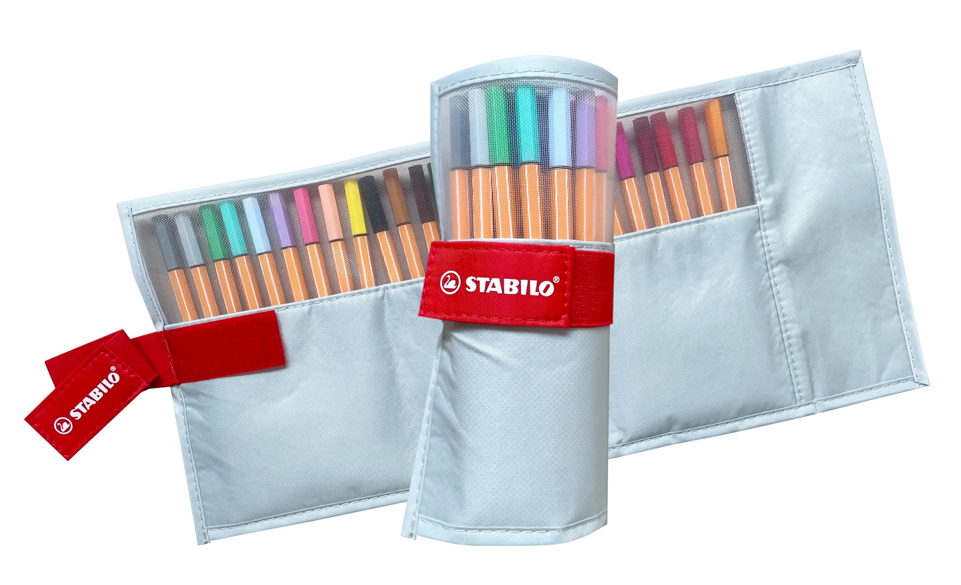 STABILO® Fineliner point 88® Rollerset Pastell metallgefasste, feine Kunststoffspitze, ventilierte Kappe, 6eckiger Schaft, Kappe in der Schreibfarbe, nicht nachfüllbar, Strichbreite ca. 0,4 mm. 25 Farben pastellgrau