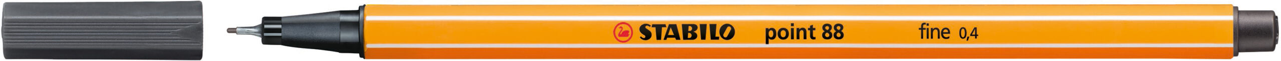 STABILO® Fineliner point 88® metallgefasste, feine Kunststoffspitze, ventilierte Kappe, 6eckiger Schaft, Kappe in der Schreibfarbe, nicht nachfüllbar, Strichbreite ca. 0,4 mm. Nachhaltigkeit eco:plus: umweltfreundliche Verpackung. schwarzgrau