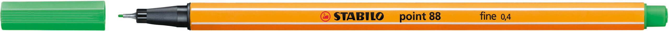 STABILO® Fineliner point 88® metallgefasste, feine Kunststoffspitze, ventilierte Kappe, 6eckiger Schaft, Kappe in der Schreibfarbe, nicht nachfüllbar, Strichbreite ca. 0,4 mm. Nachhaltigkeit eco:plus: umweltfreundliche Verpackung. smaragdgrün