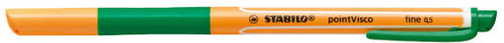 STABILO® Roller Gel pointVisco robuste Metallspitze, ventilierte Kappe, mit neuer Gel-Formel, schmiert und kratzt nicht, schnelltrocknend, gummierte Griffzone und Clip in der Schreibfarbe, nicht nachfüllbar, Strichbreite 0,5 mm. Nachhaltigkeit eco:plus: umweltfreundliche Verpackung. grün