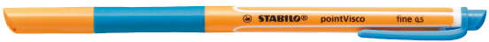 STABILO® Roller Gel pointVisco robuste Metallspitze, ventilierte Kappe, mit neuer Gel-Formel, schmiert und kratzt nicht, schnelltrocknend, gummierte Griffzone und Clip in der Schreibfarbe, nicht nachfüllbar, Strichbreite 0,5 mm. Nachhaltigkeit eco:plus: umweltfreundliche Verpackung.