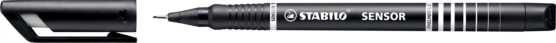 STABILO® Fineliner Sensor® F mit gefederter Spitze, Gehäuse aus recycelbarem PP, Kappe mit Clip, Tinte auf Wasserbasis, Schaft in der Schreibfarbe, nicht nachfüllbar, Strichbreite ca. 0,3 mm. Nachhaltigkeit eco:plus: umweltfreundliche Verpackung. schwarz