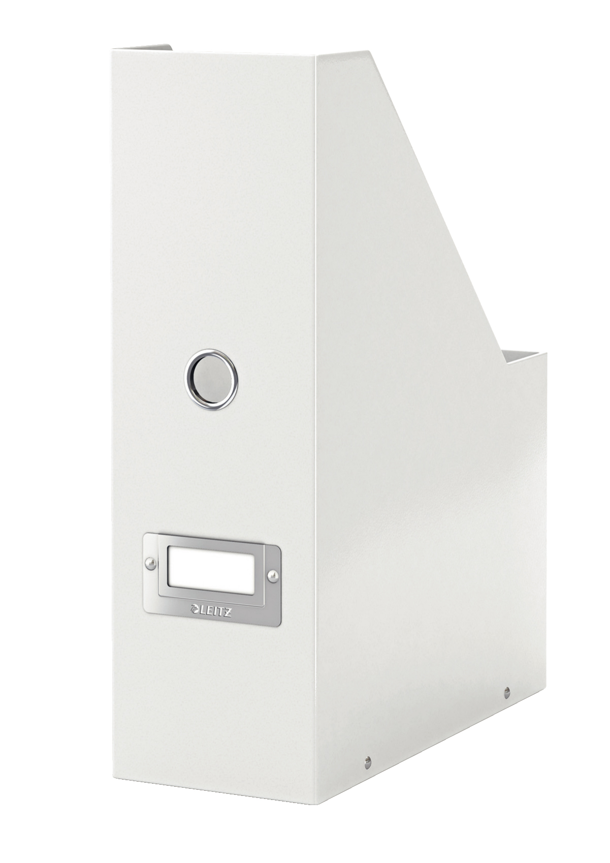 LEITZ® Stehsammler Click & Store aus PP laminiertem Hartkarton, austauschbares Beschriftungsschild auf Vorder- und Rückseite, flach geliefert, leichtes Aufbauen dank praktischer Druckknöpfe, für Format A4. Aussenmasse: B 103 x H 330 x T 253 mm. weiss