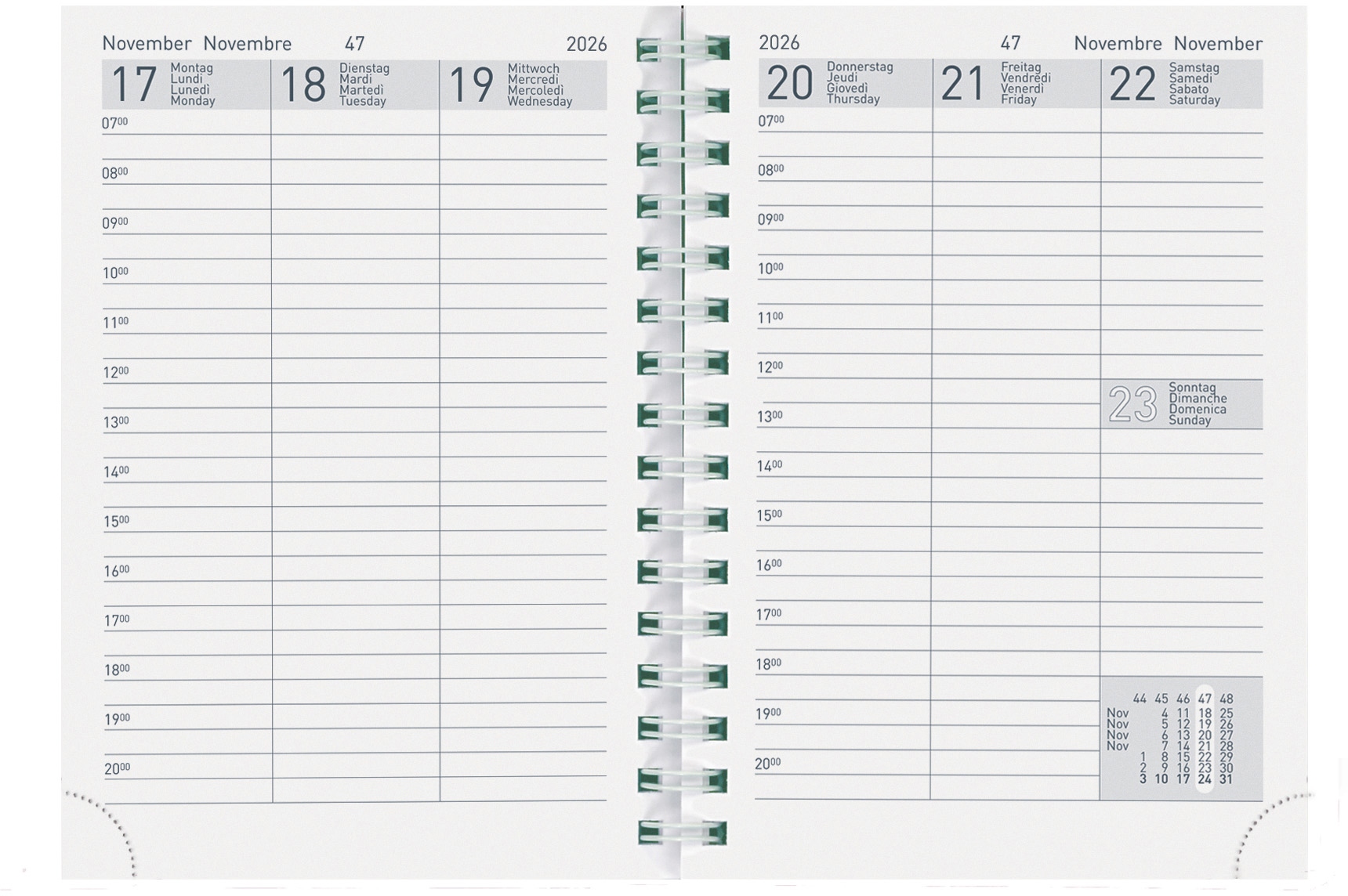 BIELLA Taschenagenda Ersatzinhalt Wire-O Nachhaltigkeit eco:plus: Zertifikat: FSC. Rex Jahrgang 2026