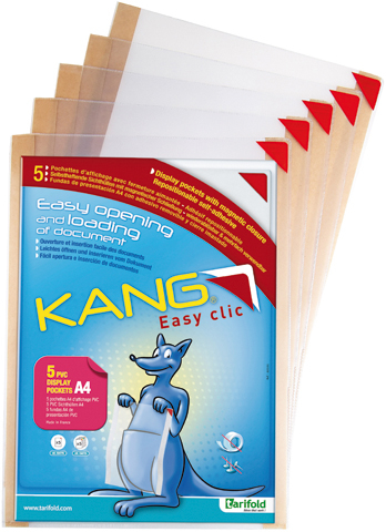 DJOIS t-view Selbstklebetaschen Kang® easy clic farblos, mit 2 Klebestreifen auf der Rückseite, Vorderseite auf 2 Seiten geöffnet, Verschluss mit Magnet, haftet auf allen glatten Oberflächen, ohne Rückstände entfernbar, Fassungsvermögen bis zu 10 Blatt, für Format A4. Beutel zu 5 Stück. Nachhaltigkeit eco:plus: verlängertes Produktleben, umweltfreundliche Verpackung. A4