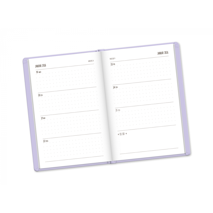 Diese Variante ist ein eleganter Begleiter durch das Jahr. Das edle Softcover im Lederlook ist fühlbar hochwertig verarbeitet und besonders unempfindlich. Filigran geprägte Ornamente zieren das Cover des attraktiven Terminplaners. Jede Kalenderwoche ist übersichtlich auf einer Doppelseite dargestellt. Außerdem bietet der Timer Platz für Geburtstage, Notizen und all das, was Dir wichtig erscheint.