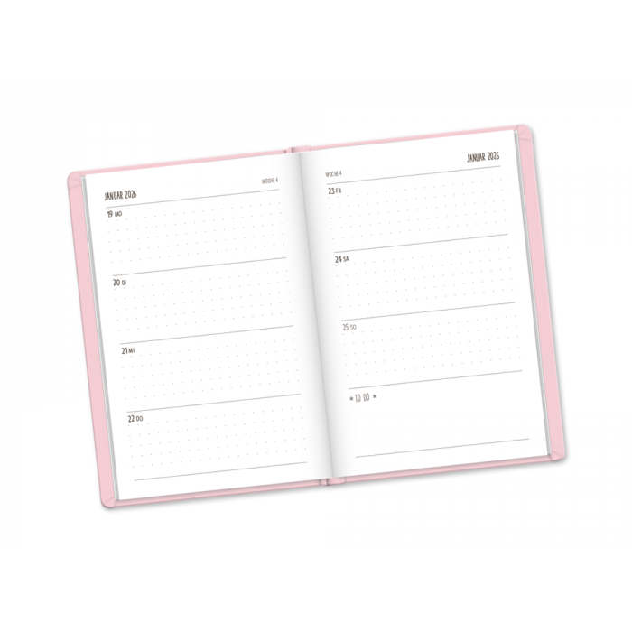Diese Variante ist ein eleganter Begleiter durch das Jahr. Das edle Softcover im Lederlook ist fühlbar hochwertig verarbeitet und besonders unempfindlich. Filigran geprägte Ornamente zieren das Cover des attraktiven Terminplaners. Jede Kalenderwoche ist übersichtlich auf einer Doppelseite dargestellt. Außerdem bietet der Timer Platz für Geburtstage, Notizen und all das, was Dir wichtig erscheint.