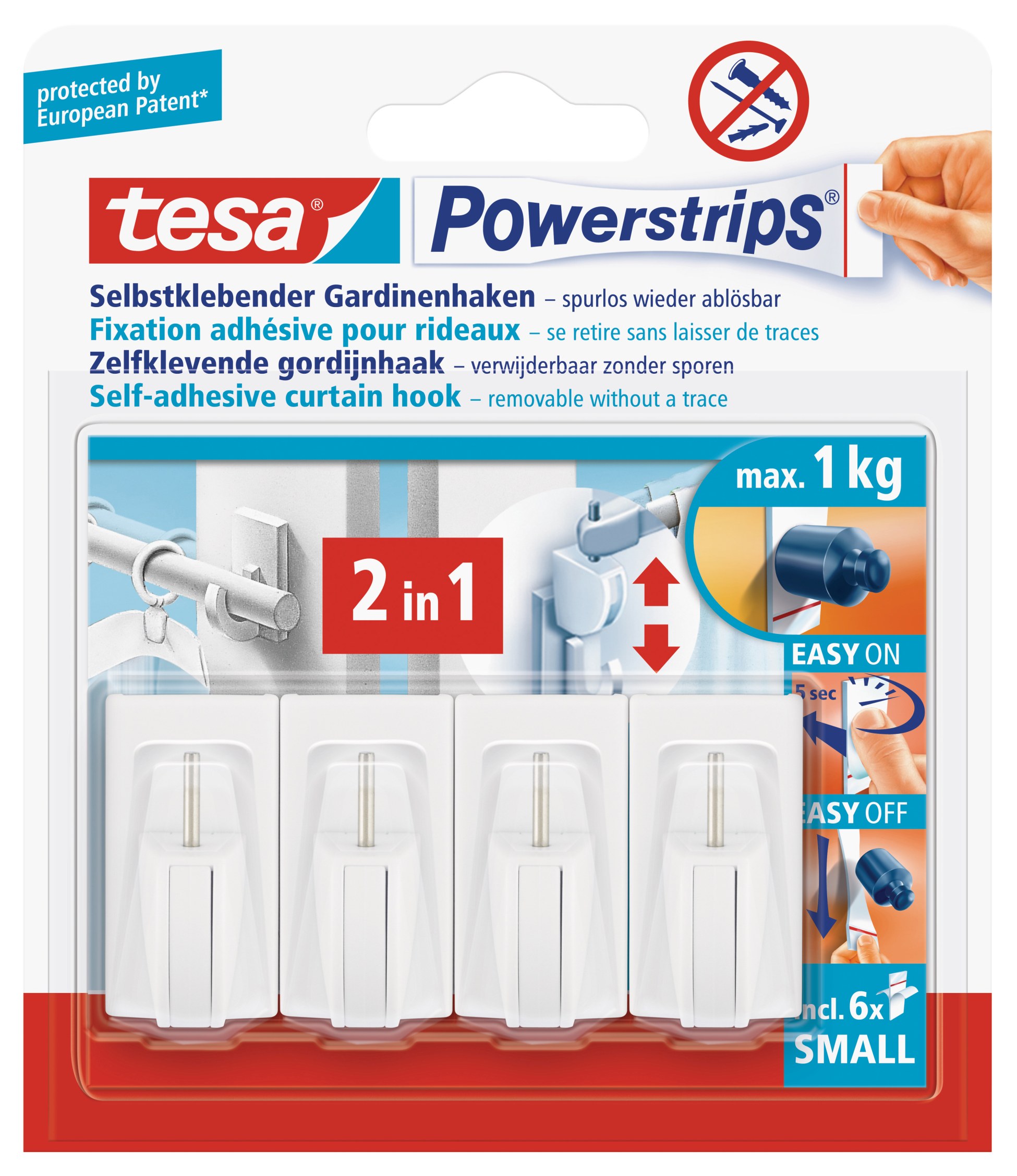 - ? Die Vario-Gardinenhaken sind mit tesa Powerstrips® SMALL mehrfach verwendbar