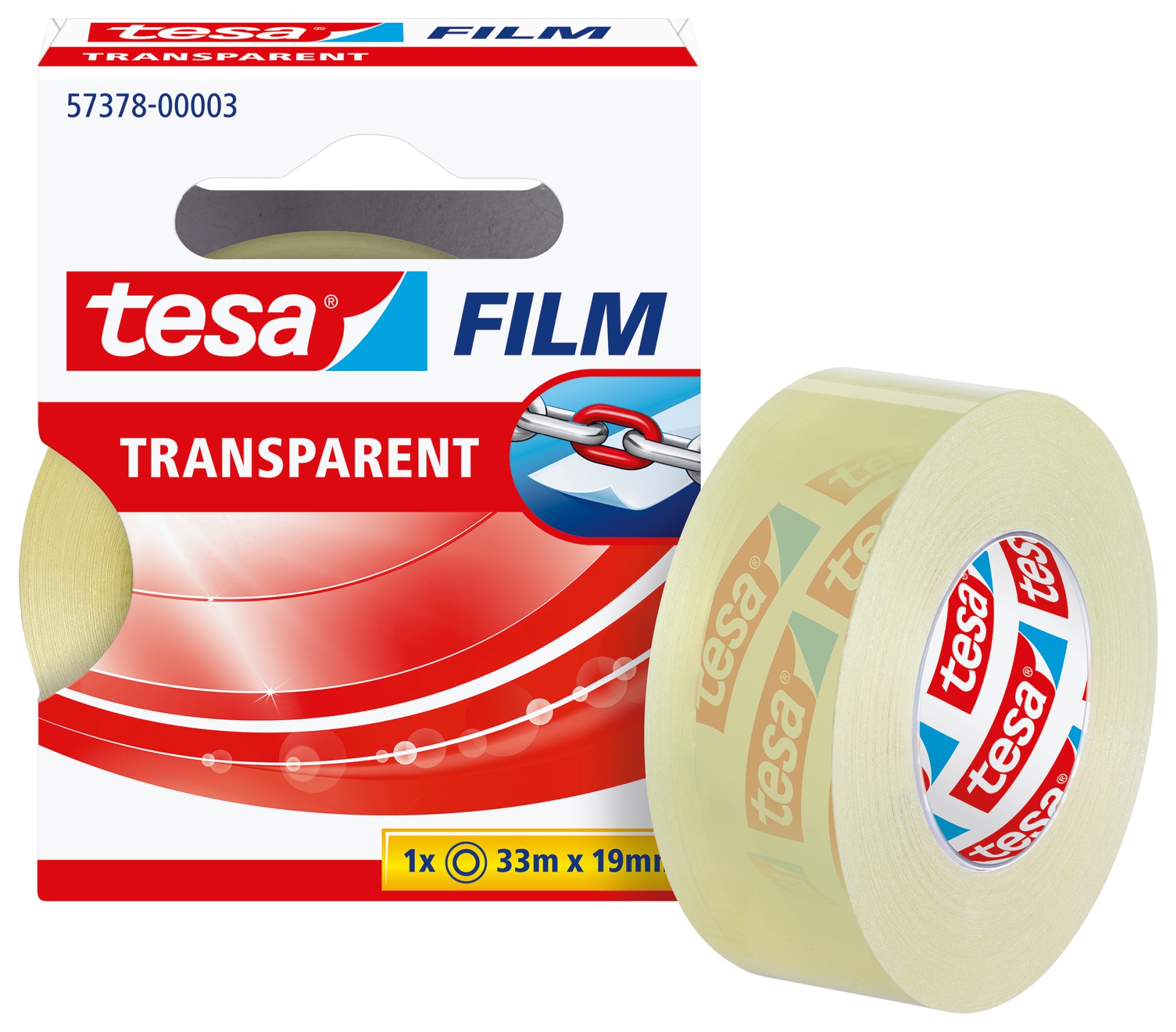 TESA® Klebeband Film transparent gute Klebkraft, transparent, leise abrollbar, alterungsbeständig. 19 mm x 33 m