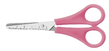 Kinderschere mit runden Klingen. Zusätzlich ausgestattet mit 5 cm Masseinteilung auf der Klingen für exaktes Schneiden.