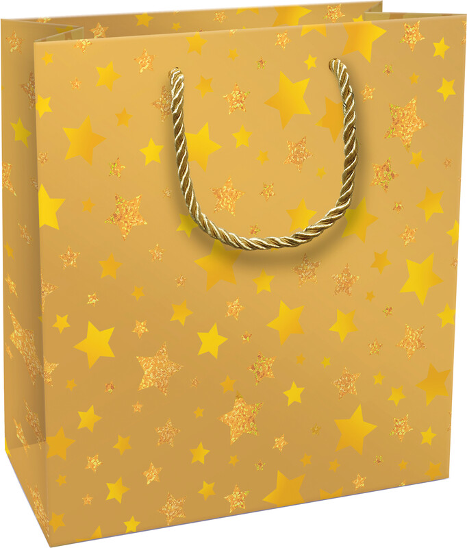 aus Papier, 150 g/m2, mit Heissfolienprägung, mit Glitter, matt laminiert, gedrehte Kordel.