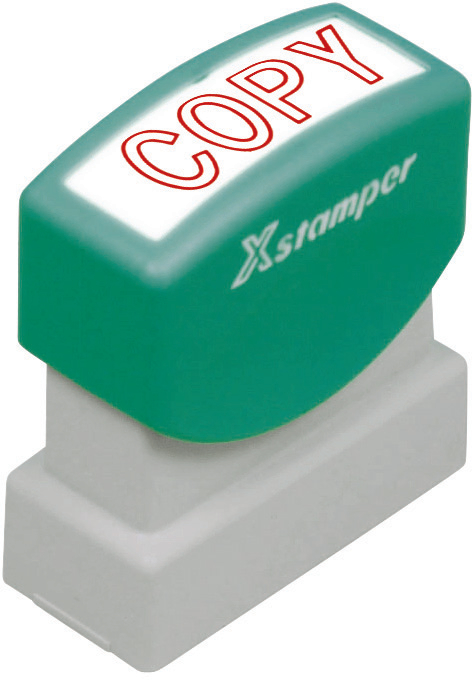 X-STAMPER® Wortstempel selbstfärbend stempelt bis 100000 mal, bevor Nachfüllen erforderlich, Stempeltext im Fenster ersichtlich. Text englisch Copy rot