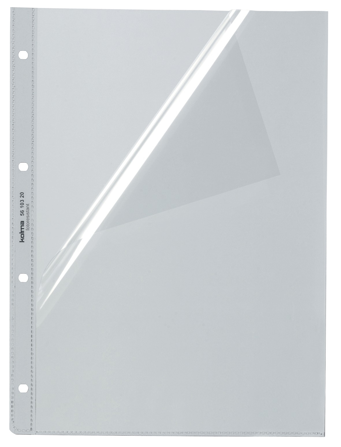 KOLMA Zeigebuchtaschen Foto-/CopyResistant aus erstklassigem, hochtransparentem Material Foto-/CopyResistant, hochwertig verarbeitet, dauerhaft und langlebig, hohe Reissfestigkeit, besonders geeignet für Fotos, aber auch für Kopien, Ausdrucke, Manuskripte etc., mit verstärktem Lochrand, ovale Lochung für müheloses Umblättern. Nachhaltigkeit eco:plus: verlängertes Produktleben, recyclingfähig, Recycelgehalt Abfall nach Gebrauch max. 100%. seitlich und oben offen, mit farblosem Lochrand A4 4 Loch 10 Stück